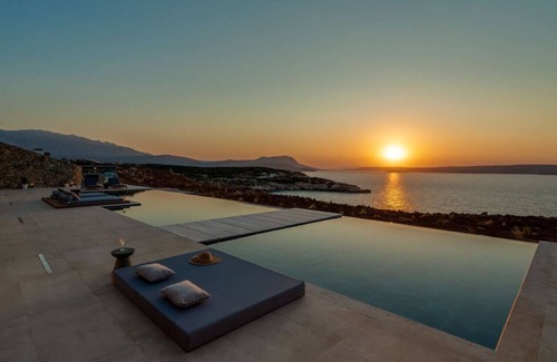 Villa offers a slice of paradise with sweeping views over the Cretan Sea. Wake up to stunning sunrises, lounge by the private infinity pool, and enjoy al fresco dining with breathtaking panoramas. Designed for relaxation the villa combines modern elegance with traditional charm, featuring spacious rooms and all the amenities for a luxurious stay. Ideal for those seeking tranquility, beauty, and unforgettable coastal sunsets