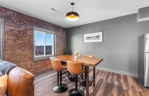 This 2 bedroom, 2 bathroom apartment offers plenty of space, natural light, and character. Located on the second floor of a corner brick building, the exposed brick interior and warm furnishings create an inviting atmosphere. Unique local artwork is featured in the unit to add a touch of Cape Girardeau’s personality and charm.