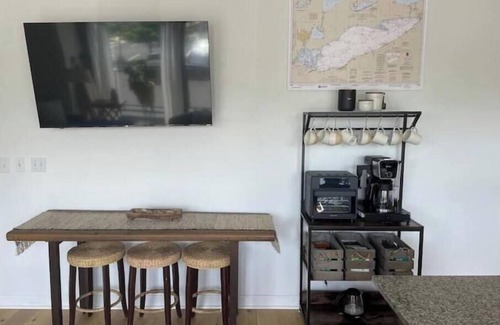 Kitchen- includes a specialty coffee/tea bar station with high end Ninja coffee maker & built-in frother. Large island bar to easily enjoy a meal or breakfast. Additional Kitchen amenities include Air fryer, microwave, dishwasher/dish soap, dishes, utensils, pots/pans, a toaster, and a blender.