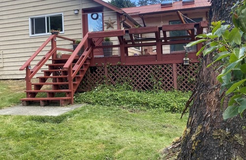 940 sq. 2 bedroom home. Quiet, private lovely fully self contained.Water views, big deck.1/4 acre. Genoa bay is a beautiful haven with a marina and restaurant. There is hiking on Mt Tzuhalem and you can take the canoe out into the bay to explore.