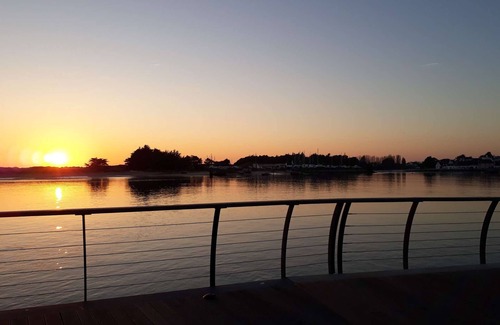 Duplex apartment classifed 3 stars located on the 2nd floor of a sea view residence facing the marina, with tennis court and heated public swimming pool in high season (mid-July to early-September). Etel beach and nautical center at 600 m. Shops at 350 m.