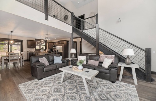 This spacious cabin boasts 4 bedrooms, 2 full bathrooms, and 1 half bath, designed with comfort in mind. For even more convenience, the cabin features a back entrance with parking (seasonally available), so you can easily skip the stairs if you prefer. For larger groups, don’t forget to check out the other Embers Gulch Lodges—they’re all within walking distance, so everyone can stay nearby!