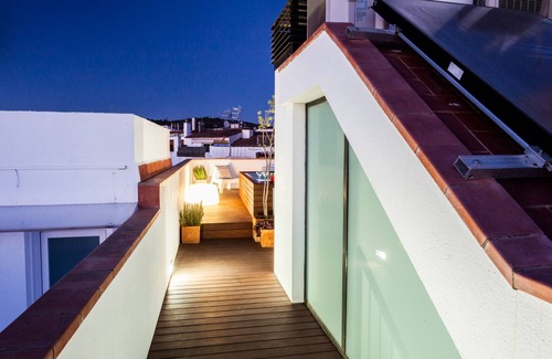 Cozy duplex for 8 people with private rooftop pool, 2 terraces and balconies. On the roof there are table and chairs to make breakfast. Located the center of Sitges and 1 minute from the beach. Surrounded by cafes, restaurants and shops. It is a duplex apartment of 150m2 with capacity for 8 people. It has several terraces and a rooftop pool, with wooden flooring, as well as tables and chairs to eat outside. You can use the sunbeds for sunbathing after a bath and relax. The house has 3 bedrooms and 2 bathrooms, and is fully equipped for everything you need for your vacation. Baby cot and high chair are also available.