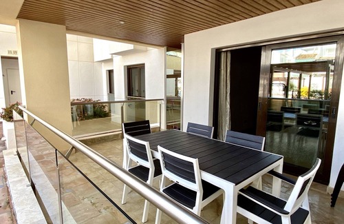 El apartamento cuenta con bañera de hidromasaje, ducha de hidromasaje, aire acondicionado frío y caliente y Smart TV de 43" y WiFI (también hay un reproductor de DVD). El apartamento tiene acabados de alto nivel, con suelos de baldosas de lujo en todas las habitaciones y paredes en los cuartos húmedos (2). La cocina está totalmente equipada con nevera/congelador, lavavajillas, cafetera, microondas, etc. Hay una lavadora ubicada fuera de la cocina con tendedero para secar. contraventanas de un solo disparo (fantásticas para un sueño reparador en cualquier momento), estas, además de cerraduras dobles y cerrojos de seguridad en todas las puertas del patio, combinados con seguridad con personal y CCTV, hacen que el apartamento sea ultraseguro.