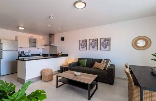 The apartment is colorfully furnished and offers guests a cozy and inviting space to relax in after a day spent exploring the island or relaxing at the beach. The living room is bright and airy, with large windows that provide a view of the lush tropical gardens that surround the resort.