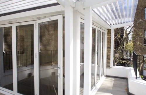 Chelsea Charm is for those who enjoy contemporary spaces and an airy bright feeling. The house is bathed in light and is laid out on 4 levels. With three bedrooms and three bathrooms, this is a perfect choice for couples traveling together or for larger families. For outdoor life head up to the large roof terrace where you can relax and look over the London skyline as you enjoy a glass of wine or a morning cup of coffee.The bathrooms are contemporary and stylish and the apartment oozes class and refinement and has been decorated in a very chic and modern fashion.Please be aware that the steps leading down to the lower floor bedroom are not child or elderly friendly and extreme care would need to be taken when both going up and down the stairs. This bedroom does have French windows on two sides which can be fully opened giving the experience of having the great outdoors actually in your bedroom. Great during the summer months. The nearby Fulham Road with an array of classy shops and restaurants is certainly worth exploring or try a pint at the famous Hollywood Arms which can be your local pub whilst staying in town.The ground floor of Chelsea Charm is where you will spend time relaxing, cooking and just enjoying your time in London. There is an open plan living, dining and kitchen area which makes this the perfect place to come together after a day of visits around London.