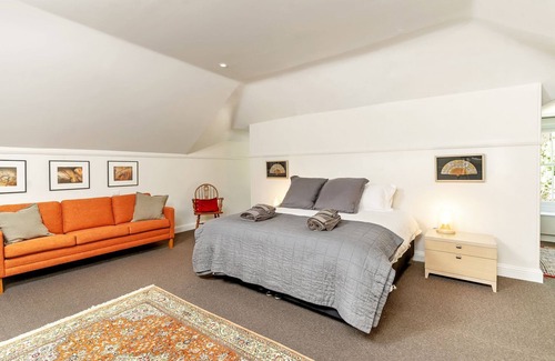 The Garden Cottage is a separate dwelling and has one bedroom upstairs with a double bed and single bed, plus a good quality queen sofa bed downstairs. This cottage has its own kitchen, living area and a shared toilet / shower bathroom upstairs.