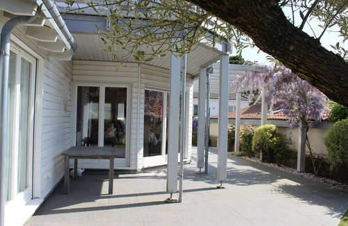 Lovely detached house with HQE (High Environmental Quality) wood cladding, located 50 meters from the sea, in a quiet and green area with pretty villas, and 1 km from the port via the beautiful coastal promenade.