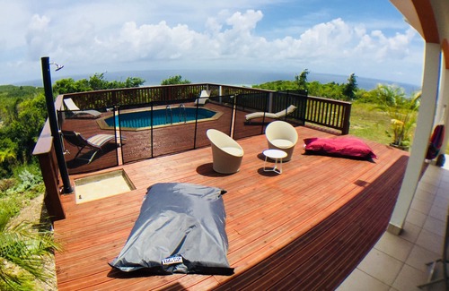 Unique in Marie-Galante, villa classified 3 stars, spacious and comfortable on the heights of Grand Bourg, well ventilated by the trade winds and enjoying an exceptional panoramic view of the islands of Martinique, Dominica, Saintes and Guadeloupe.