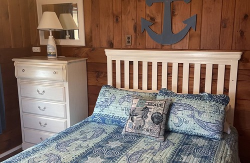 Efficiency Cottage with a screened in porch, non smoking, sleeps 1-2 guests comfortably, queen size bed, no separate living room. Has a small bathroom with shower and small kitchen with full size refrigerator and a cook top. Air conditioning and heat. Microwave and kitchen utensils. Up to 2 small dogs or 1 medium to large dog. Early check in available for $100