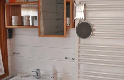 They occupy the 65 square meter house with 500 square meters of land alone. Your house is at ground level. The center of the wooden planks house is the living room with a cozy fireplace, two cozy sofa, a flat screen TV and a modern stereo and a DVD player. The house is heated with modern central heating. Your bright dining room can accommodate 4 people and is directly adjacent to the modern, fully equipped kitchen with breakfast bar. Both bedrooms have quality double beds and mattresses. Your bathroom is equipped with shower and toilet. We are happy to provide you with Wi-Fi and bicycles available, are at your disposal with advice for excursion tips to specifics of the region. The house was renovated in 2016 and awarded by the German Tourism 4 stars.