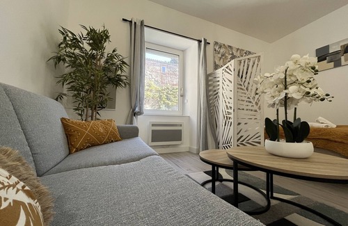 This charming, fully-renovated studio apartment in the heart of the town, with its modern decor, will make your stay as pleasant as possible. This charming accommodation comprises a main room with a sleeping area and a sitting area equipped with a sofa bed that can accommodate 2 extra people.