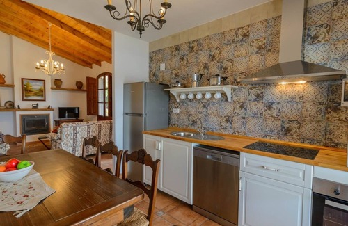 This house has been recently renovated, to provide its guests with all the necessary facilities to spend an unforgettable holiday. The cosy living area is divided into a double-ceilinged living room with two sofas and a fireplace, and a fully equipped kitchen with dining table. The open-plan concept allows the whole family to spend time together, watching TV or preparing delicious meals with the kitchenware provided.
