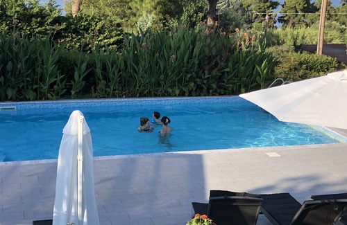 The five villas of the complex share the 5x10m swimming pool and the wonderful 3 acre garden, which is fenced to create a safe environment.