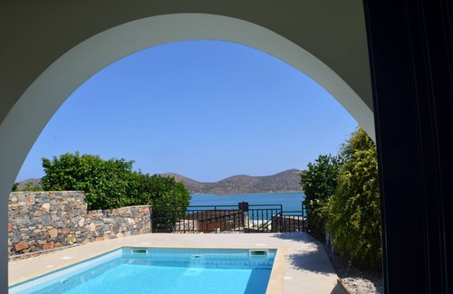 Elounda, private pool, near beach and shops, stunning views facing the sea | Villa in Crete, Greece