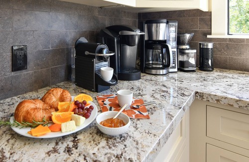 * Fully stocked Chef's kitchen with: espresso/ cappuccino machine, Keurig and drip coffeemakers
