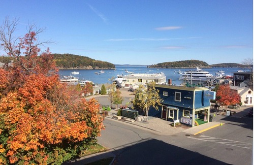 Your private furnished deck is located near the Bar Harbor town pier so you can view the rocky coast of Acadia, schooners, whalewatch & lobster boats, colorful sunrises & sunsets.