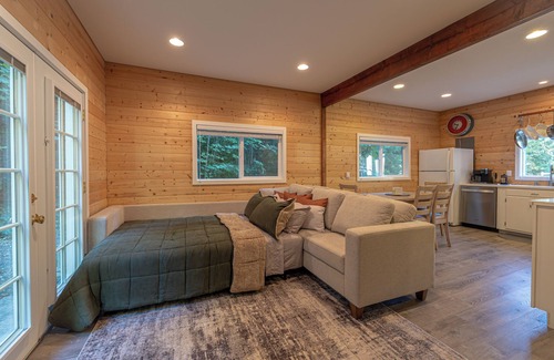 - Indulge in the brand-new deck, complete with a jacuzzi overlooking the lake
