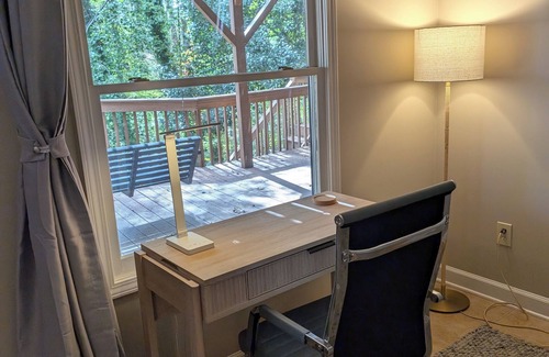 During the day, cruise the lake with our kayaks or bring your own lake toy--the cove has it's own private boat launch. This 3 bd/2 bath home has two dedicated work spaces, Starlink Wifi, living room, dining room, modern media room, and comfortable Nectar beds.