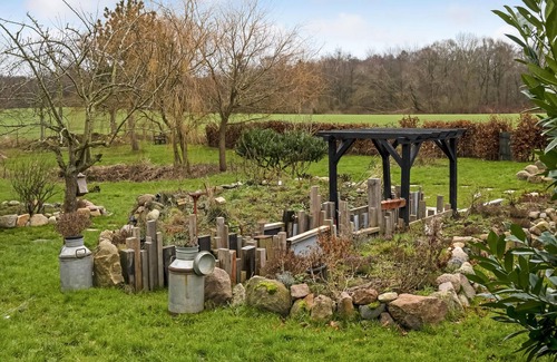 Near the north coast of Falster, this well-kept half-timbered house welcomes you. If you love the charm of older buildings and a large space, this is the place for you! The well-kept accommodation promises you not only relaxation, but also comfortable and stylish living. Enjoy the loving design of the house and come to rest. Here you will find everything for your carefree vacation. Also enjoy delicious meals or sun on the terrace and explore both the garden and the beautiful courtyard, where you can relax on balmy summer evenings under the canopy of the tree and fairy lights.