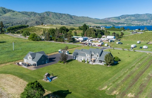 Spacious (3300 sq ft) home on 1.5 acres located just a few miles from town with mountain views. It's a 3 minute drive/20 min walk to Chelan and just 6 miles from Manson. The beautiful craftsman comfortably sleeps 12, boasts 2 master suites with private baths & king size beds, plus 3 more bedrooms and 3.5 Bathrooms. There are plenty of beds and no one has to sleep on a hide-a-bed or futon. This home offers privacy and space for multiple families, there is plenty of room to park your boat. Relax after a day on the lake in the hot tub or gather on the back deck for a BBQ and spend time together. Enjoy a home cooked meal in the fully-stocked kitchen or try one of the many Wineries or Restaurants that the area has to offer. Vin Du Lac Winery is a 2 min drive or 14 min walk and Lake Chelan Winery is a 7min drive - there are many more wineries in the Valley. Less than a mile from the Chelan Municipal Golf Course.