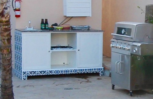 There are 3 independent studio villas, each with private entrances and private bathrooms. Each villa was professionally decorated with high end touches and your comfort in mind and includes a comfortable King bed, a seating area, Smart TV (so you can stream Netflix, etc.). Watch the sunsets from the garden bar, and cool off in the pool on a hot day. The outdoor grill is ideal for a barbecue, and the local carniceria sells everything you'll need to grill. There's a full kitchen (indoors) with full size refrigerator, stove, counter space, and indoor dining table.