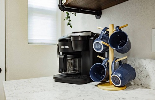 Imagine starting your day with a freshly brewed cup of coffee from our well-stocked coffee bar, featuring both a Keurig and a drip coffee maker. Each kitchenette is designed to cater to your culinary needs, equipped with: