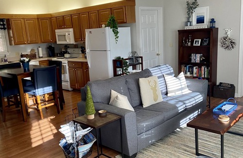 You'll want to enjoy each morning cup of coffee from here. Features include a large, well-stocked kitchen and comfortable living area with a pull-out sofa bed, desk (if work absolutely can’t wait!) and gas fireplace. The kitchen seats four at a pub-style table and features a Keurig machine, Crock Pot, and all that you need to make a meal at home. Choose between two beautifully decorated and well-appointed bedrooms - the deer room with full bath, garden tub and large walk-in closet or the mountain room with a full bath. A washer and dryer is available for use in the laundry room. Situated at the top of Ski Mountain, you’re almost as close to the slopes as it gets. The Blue Ridge Parkway less than 5 minutes away, downtown Blowing Rock less than 10 minutes and downtown Boone less than 15 minutes. Tweetsie is so close you can hear it's whistle of this much-loved area attraction. You'll smile each time you hear "choo choo!" You’re close to all that this incredible area has to offer or you can stay in, enjoy the beautiful home and take in the views, mountain breeze, and sounds of nature. We look forward to sharing our home with you!