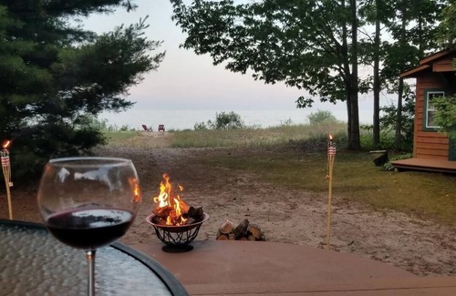 Escape to our Lake Huron cottage, nestled on 100 ft of pristine private sugar sand beach with ripple sandy bottom ,summers perfect beach! Now, is the perfect time to indulge in the warm ambiance of the knotty pine as you cozy up by the wood burning fireplace with a glass of wine, or gather around the outdoor fireplace on a balmy night roasting marshmallows under the starlit sky. As fall leaves transform the landscape into a vibrant tapestry of reds, oranges, and yellows, the cottage offers the perfect retreat for lovers of nature and tranquility.