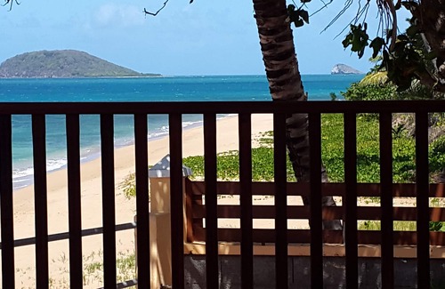 Directly on the beach, this villa called "Escape with the sound of the waves" guarantees you a stay full of peace. You will have the pleasure of waking up with a wonderful view of Monserrat Island, the Karouane hamlet, Tête de l’Anglais, and seeing an exceptional sunset. Close to one of the most beautiful beaches of the island, it offers also a beach below, favourable to the romantic evenings, with the good flavours of our exotic cocktails with the light of the torches.