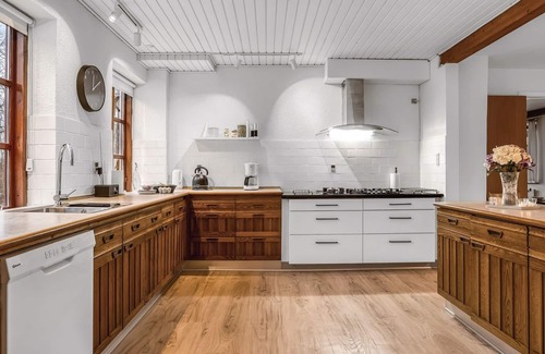 "Eva" - 9km to the fjord", 4-room apartment 290 m2. Object suitable for 12 adults. Living room with TV. Kitchen (oven, dishwasher, 5 induction hot plates, microwave, freezer). 3 showers/WC. Upper floor: 1 room with 1 x 2 bunk beds, 1 double bed. 1 room with 1 double sofabed and 1 double bed. 1 room with 1 bed. 1 room with 1 bed and 1 double bed. Facilities: Internet (WiFi). Please note: non-smokers only. Maximum 2 pets/ dogs allowed. 849