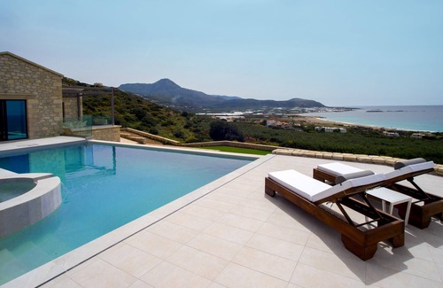 Best-rates for the Falassarna villa starts from $4,013 per night with includes Parking, TV, Oceanfront, Security/Safety, Bedding/Linens, Breakfast, Barbecue/Outdoor Cooking, Laundry, Pool, Private Pool, Hot Tub, View, Ocean View, Fireplace/Heating, Child Friendly, Kitchen, Air Conditioner, Balcony/Terrace, Wellness Facilities, Spa, Internet with all other facilities. Casai.ca matches every traveler with their perfect accommodation, whether you are traveling with a group, friends, family, or pets.
