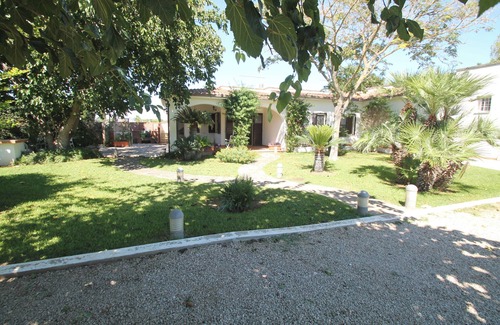 Large garden with parking space, stone barbecue, outdoor furniture and shower. Inside: TV in living room, fixed and mobile fans, mosquito nets, microwave, washing machine. In one of the single rooms there is a sofa bed for 2 (usable if you are in 9). The kitchen is equipped with everything necessary. The villa is completely fenced.