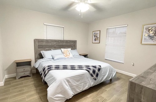 This corporate/executive rental near downtown Bradenton is a fantastic option for individuals seeking short-term, mid-term, or long-term accommodation. The convenient location, finely furnished interior, and comprehensive amenities make it an appealing choice. Situated near downtown Bradenton, the property offers easy access to various amenities. The ability to walk anywhere in downtown, 1 mile to LECOM PARK, a short 6-mile drive to Anna Maria Island, and proximity to the new AMI water taxi enhance the convenience for tenants. The property is easily accessible to Bradenton, Palmetto, Sarasota, and Lakewood Ranch, providing tenants with the opportunity to explore and enjoy everything these areas have to offer. The 2-bedroom villa features 2 king beds, 1 sleeper sofa, accommodating a variety of sleeping preferences. Tenants can enjoy relaxation on both the front porch and fenced yard back porch. Weekly and Monthly Rental available.