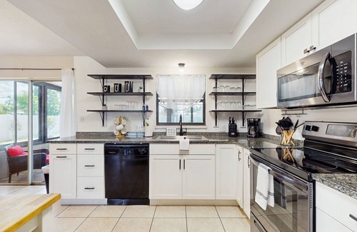 Located in the heart of Port Charlotte, you'll find yourself just a short drive away from the stunning beaches of Charlotte Harbor, the Peace River, and the Gulf of America. Make exciting day trip plans to visit historic Punta Gorda and the world famous beaches of Boca Grande and Manasota Key, the shark tooth capital of the world! Whether you're looking to indulge in shopping, dining, or outdoor activities, everything you need is within reach. The fully equipped kitchen boasts modern appliances, perfect for preparing family meals after a day of adventure.