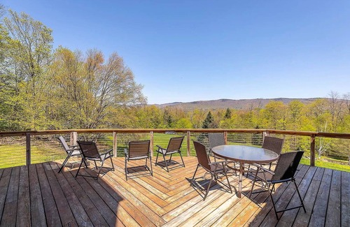 Make Highland View Lodge in Weston your family or group's home for the winter season. This spacious 4-bedroom, 3-bathroom log cabin sits on 3 quiet hillside acres and boasts stunning mountain views. Savor your morning coffee with amazing sunrise views over the mountains and relax after a day in the snow by the huge wood burning fireplace.