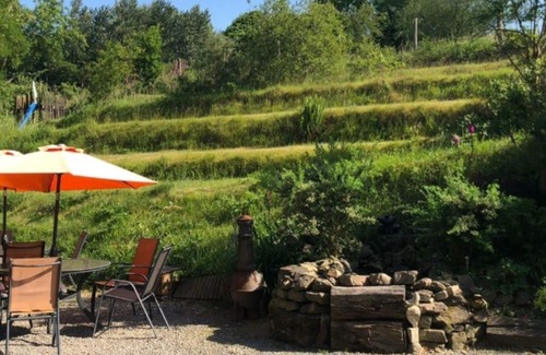 Set in 1 acre of enclosed gardens with views across the valley, it's a great garden for playing, relaxing or alfresco dining. We have a fully fenced above ground 5m solar heated Swimming pool & an indoor Play Loft which has toys for our youngest guests through to teens.