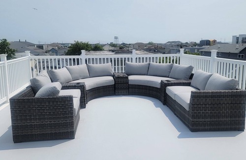 The paint has barely dried on this stunning new home. You won't want to leave this 5 bedroom, 4 bath multi level house with a spacious open floor plan. No expense was spared and no detail forgotten. Family fun and Comfort were the priorities when furnishing this house. Premium mattresses, large comfy couches and big flat screen TV's in every room and hairdryers in all bathrooms! Game nights will be a blast with the pool table, ping pong table, giant connect four and classic arcade game. Take a morning bike ride on the boardwalk with one of the complimentary bikes. Your day at the beach will be a day at the beach with all of the beach supplies that are provided!! Enjoy coffee and cocktails from one of 2 balconies or head up to the top floor den that opens onto the rooftop deck with amazing views. You won't want to miss a single sunrise or sunset!! Private fenced yard is the perfect place to host a BBQ. Beach chairs, umbrella, bikes and 6 beach badges included. You will love your time spent here. Please be sure to check the amenities list to prepare for your stay.