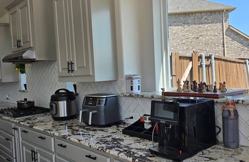 Consider this house your home away from home while you visit Dallas. With 4 bedrooms including 1 king, 2 queen, and 1 twin bed, this fabulous property offers plenty of space for guests to unwind. The 4 bathrooms come equipped with a bathtub and shower for added convenience. Perfect for families, groups, or anyone seeking a mix of relaxation and entertainment, this home has everything you need for an unforgettable stay. Kickback, relax, and enjoy everything Fate and our house has to offer.