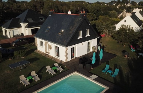 Family house located in Saint Gildas de Rhuys 350m from the beach of Kercambre on a 1300m² enclosed garden, with private pool, ideal for family (5/8 people).