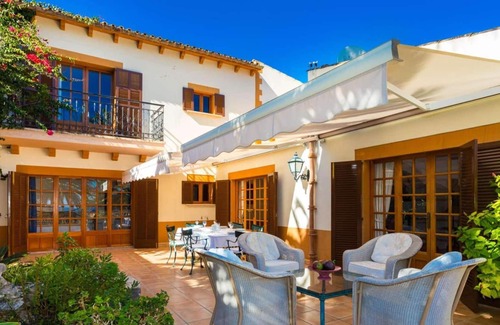 Surrounded by a dense green hedge and lush Mediterranean vegetation, lies the very beautiful villa "S'Embat", shielded well away from prying eyes. A dreamy outdoor area is the hallmark of this holiday destination and can really is a sight to behold. Around the front of the house runs the very well-kept, tastefully furnished and partly covered terrace. The aesthetics that have been implemented here create a very fine and solid atmosphere, which makes an enjoyable holiday just that bit more special. A great lounge area awaits on the large balcony to all those who want to be that much closer to the sky whilst enjoying wonderful sea views. The Pool area fits seamlessly into the garden and forms a separate zone for relaxed chilling and refreshment. The elegantly curved pool is surrounded by a charming terrace where comfortable sun loungers are available to all of the sun-lovers amongst you. Depending on the time, you can also find shaded refuge under the high palm trees. Sporting enthusiasts will be delighted by the table tennis table, which will definitely tempt them into playing a match or two. The house is located directly by a small road that is rarely frequented. You have the pleasant feeling of being both in the middle of a little village while at the same time enjoying complete and utter privacy, peace and quiet.