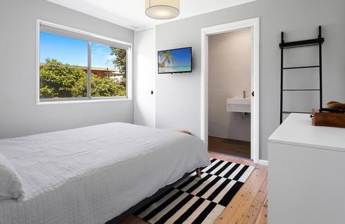 Located in central Narooma 2 minutes from Woolworths & 5 minutes from the beach is our fantastic holiday home with stunning views from the existing balcony & new entertaining deck with 8 seater table & chairs. The property has recently been upgraded with the addition of an ensuite to the main bedroom and the removal of the wall between the kitchen & living area and installing a new kitchen. The original carpets have been removed & the floorboards polished throughout the house.