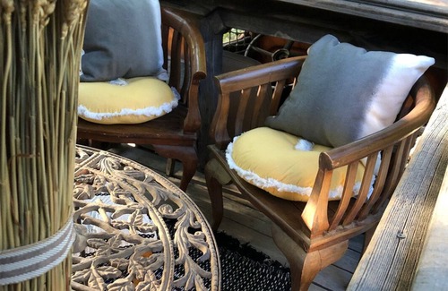 Please note, the bathroom and shower are below and unattached; be assured, they are not shared and are yours alone. Also note, there is NO AIR CONDITIONING but there is heat from a state of the art heater. For keeping cool, there is a vintage fan which is pretty powerful and both doors to the inside of the treehouse open to make it very comfortable except during peak hours on the hottest of days. Temecula does cool off at night and always has a breeze at about 4:30 pm; also the covered truck bed patio is always pleasant. We've actually never had a person complain about the temperature, however, if you're not up for the "full monty" of glamping, you might find one of our other listings more to comfortable.