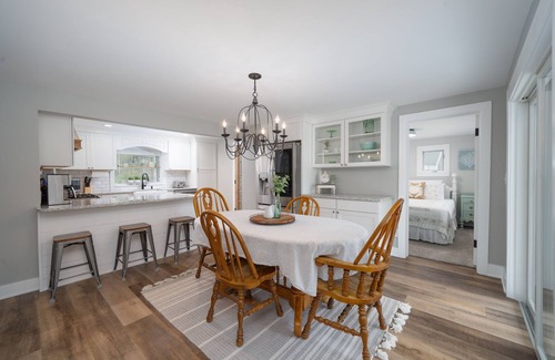 Welcome to our 125 year old, remodeled farmhouse. This adorable farmhouse has all new amenities: kitchen, 2.5 baths, laundry room, carpet & plank flooring, paint, appliances, etc. Even though the home has been updated, we maintained most of the original farmhouse charm and the cozy cottage feel. This home is near the end of a cul-de-sac road and sits atop a hill with beautiful views of Little Bass Lake. There is no public access or launch to the lake so it stays pretty quiet. There are 3 kayaks as well as a paddle board available for use. The large stone fire-pit that overlooks the water is perfect for bonfires and roasting marshmallows! Metal roasting sticks are available in the garage. There is firewood onsite for purchase in the garage.