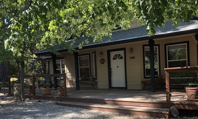 The 10 acre farm began as little cabin and has now transformed into a retreat center in the forrest, a place to gather for family reunions, weddings, workshops, ceremonies and events. The property also holds space for a huge medieval style outdoor labyrinth constructed of eleven truck and trailer loads serpentine, the state rock of California. The two gardens are abundant with fruit trees, veggies and flowers. The one acre pond is a delight for a summer swim during the irrigation season. The farmhouse was last remodeled with Brazilian cherry hard wood floors throughout. Beautiful views of a large variety of trees can be seen outside of every window. This is the perfect elevation for the largest variety of trees on the western slope of the Sierra Nevada mountain range. Georgetown is known for it's gold mining and timber harvesting history. The town is within a mile and offers restaurants, bars, a distillery, tourist shops, a museum and a little market, with a supermarket just outside of town. Walking to town through the local nature area is a delightful experience. Nature hikes abound throughout the area and Lake Edson is just 15 miles up country.