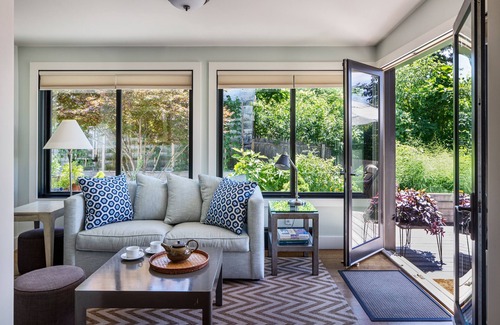 The sun porch of the kitchen is where we generally spend our time relaxing. The morning sunshine is bright and allows you to wake up while you sip your coffee or tea. The espresso machine and drip coffee makers are just a few steps away in the kitchen. Bring your favorite beans and grind to your specification.