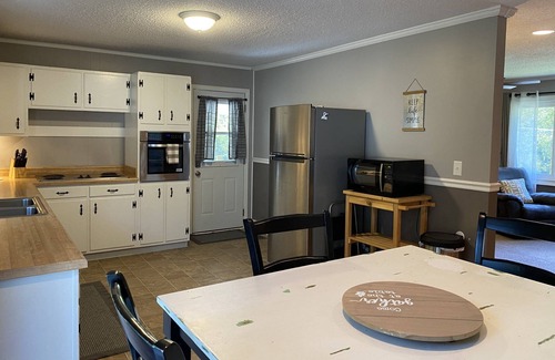 "This is clean beautiful property. It was perfect for what we needed. Personal touches that were unexpected made our trip so pleasant. I wasn’t expecting the kitchen to have extras like hot chocolate that my grandchildren enjoyed and coffee, sugar and creamer. The bathroom also had little extras. We enjoyed the fire pit in the backyard that also included wood. It was close to the activities we wanted to do. My husband said as we were leaving that he would come back!" - Mary, Oct 2024