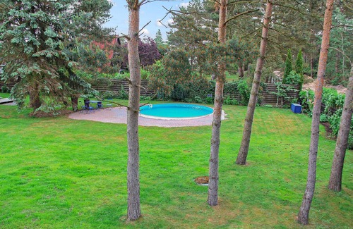 The holiday apartment with separate access is located on the ground floor of a residential house on the 3000 square metre pottery and holiday farm in a direct forest location. It was partially renovated in 2018 and is equipped with: Living room (satellite TV, radio), 2 bedrooms (1x double bed, 1x two single beds), kitchen (dining area, ceramic hob, fridge, dishwasher), shower/WC, central heating. There is also an outdoor pool (shared use), a furnished terrace, barbecue and car parking space as well as W-LAN. The total price includes water, energy and final cleaning. Towels and bed linen must be brought. Pets are not allowed: One small dog up to a height of 40 cm is allowed in this property. To be paid on site: Resort tax.