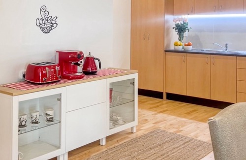• Fully equipped kitchen with microwave, oven and coffee machine
