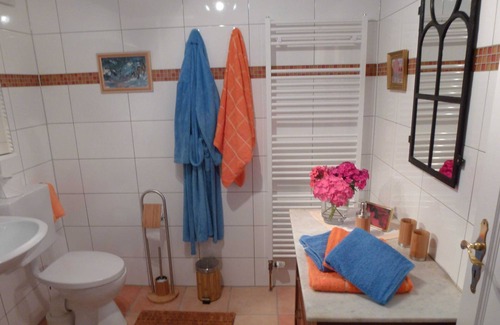 The apartment "Emil Nolde" is lovingly decorated with many reprints of his paintings and is located on the ground floor of the property. It has two separate bedrooms, a large dining and living room, an open kitchen and can accommodate up to 5 people. The romantic apartment is spacious with stove and fully equipped kitchen and very tastefully decorated. A large terrace invites you to linger. These are exclusively non-smoking apartments!